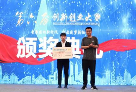 主持人宣布第六届创新创业大赛比赛结果。璀璨航拍有限公司取得桂冠,海滨科创生物技术有限公司、梦拓电子商务有限公司分获亚军和季军,其余参赛团队均获优秀奖。