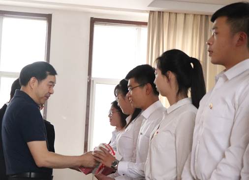 学校党委书记魏旺强代表学校为党员赠送礼物