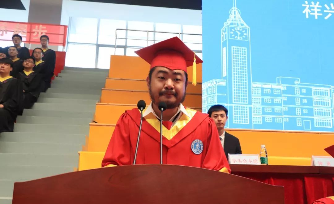 土木建筑工程学院李佳根同学代表2019届毕业生们表达了对老师的感谢和对母校的不舍。他深情回忆了大学四年生活,并表示会牢记“进德修业、知行合一”的校训,恪守道德、勤于实践、真诚待人、踏实做事,一步一个脚印书写新的人生篇章。