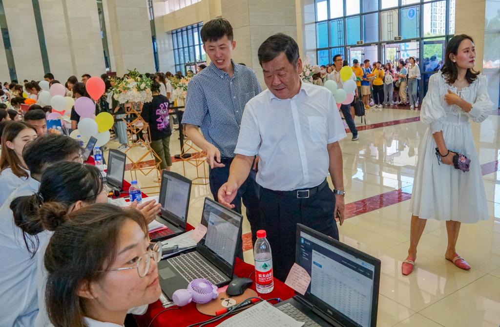 在新生报到现场,不乏可以看到我校各学院鳞次栉比的报到点、各部门设立的咨询处以及随处可见的志愿者服务站点。我校迎新教师细致耐心地向新生及家长答疑解惑、各青年志愿者频频穿梭于校园各处。2019级滨果儿如期而至,海滨今后与你一同砥砺前行。