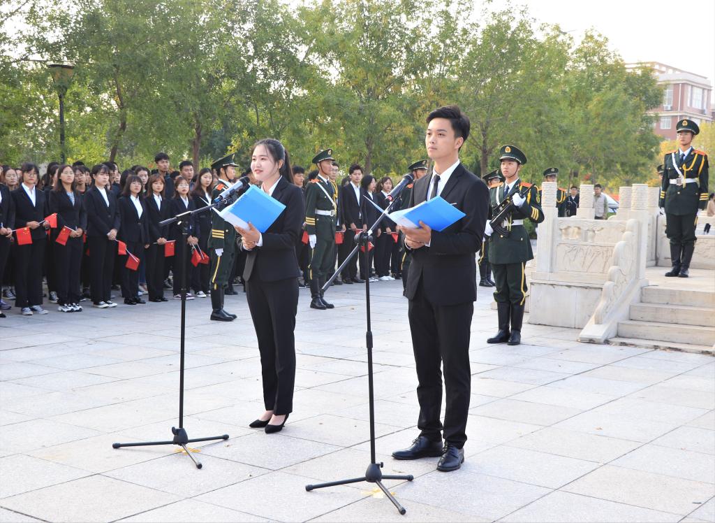 9月23日上午7点,为庆祝新中国成立70周年,弘扬爱国主义精神,激励我校师生振奋精神、拼搏进取。我校在图书馆南侧中心广场隆重举行以“我与祖国共奋进”为主题的升旗仪式。党委副书记魏炜,各相关职能(部)处室负责人,各二级学院(系)负责人,全体辅导员老师、师生党员代表、各二级学院(系)学生代表参加此次活动。学生处副处长翟砚辉主持此次升旗仪式。