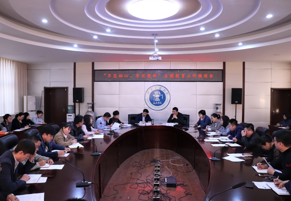 党委书记魏旺强充分肯定了我校前阶段开展“不忘初心、牢记使命”主题教育取得的扎实成效,结合现有教师党员教学任务重、联合支部共同时间少等现实问题,要求主题教育工作小组和基层党组织安排各项主题教育活动更加合理,更加符合学校实际,更加注重活动效果。