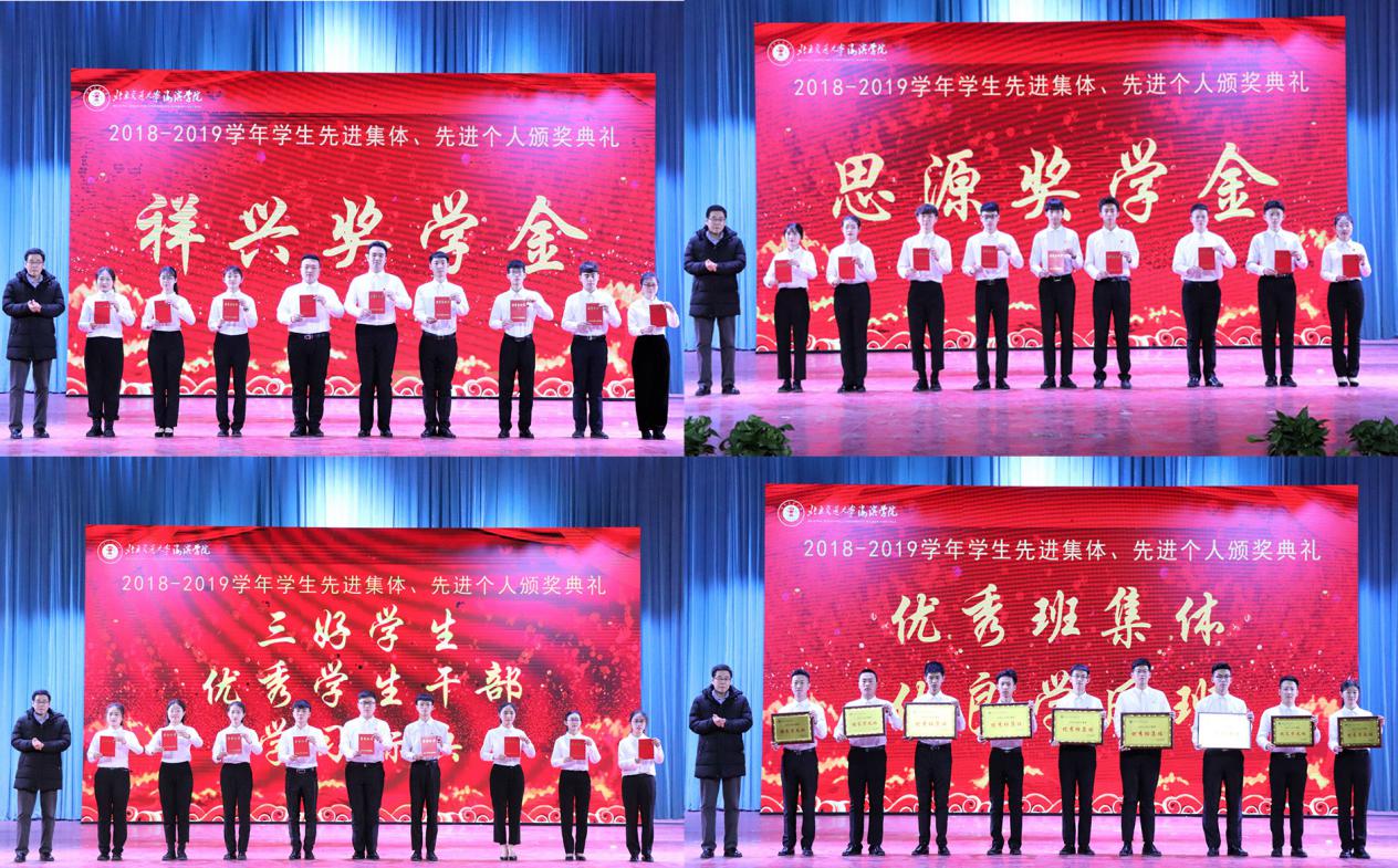 2018-2019,我校共有12个班级荣获“优秀班集体”荣誉称号、30个班级荣获“优良学风班”荣誉称号、486名学生荣获“三好学生”荣誉称号、464名学生荣获“优秀学生干部”荣誉称号、109名学生荣获“学习标兵”荣誉称号;15名学生获得“国家奖学金”、386名学生获得“国家励志奖学金”、80名学生获得“祥兴学习奖学金”、81名学生获得“祥兴工作奖学金”、1902名学生获得“思源学习奖学金”、888名学生获得“思源学生工作奖学金”、225名学生获得“思源进步奖学金”、293名学生获得“思源奋进奖学金”、197名学生获得“思源文艺奖学金”、197名学生获得“思源体育奖学金”、197名学生获得“思源科技奖学金”。