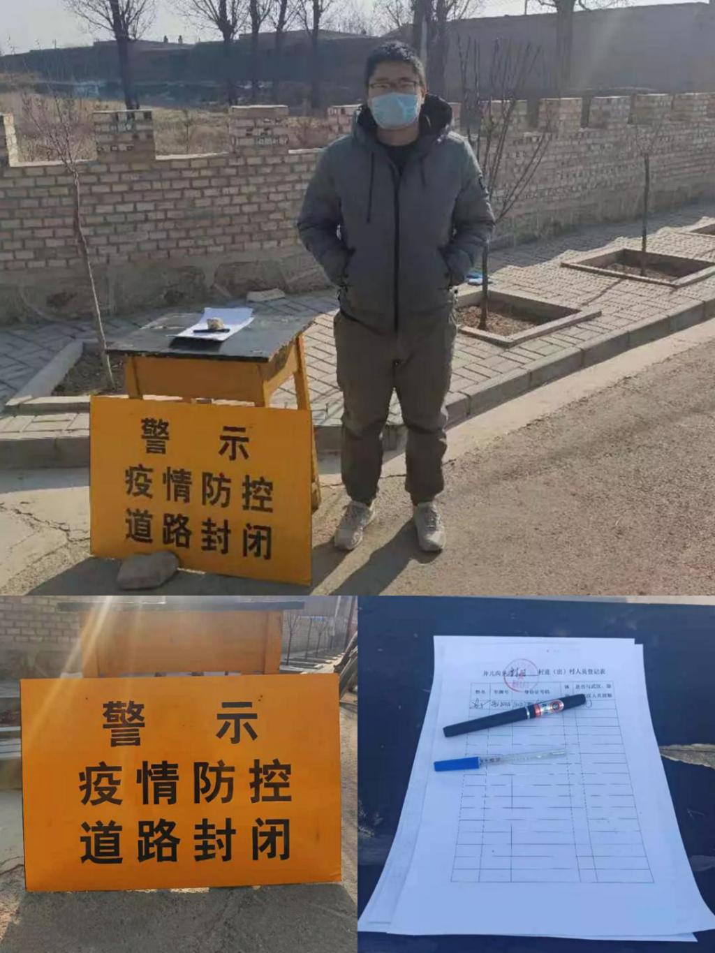 “叔,您这是要去哪儿?”、“奶奶,我来给您检测一下体温。”、“哥,您找谁?请您配合我检测体温,并登记一下您的信息。”这是计科1708班入党积极分子李伟军同学一天中说得最多的几句话。不管是谁,只要从检测站前经过,他都会做好登记。"有时候晚上执勤冻得直哆嗦",但为了村里人的安全着想,他依然坚持在一线,自愿为村民服务,协助村支部,对来往人员都做好登记以及体温测量,做好防疫工作检查,这就是海滨精神!