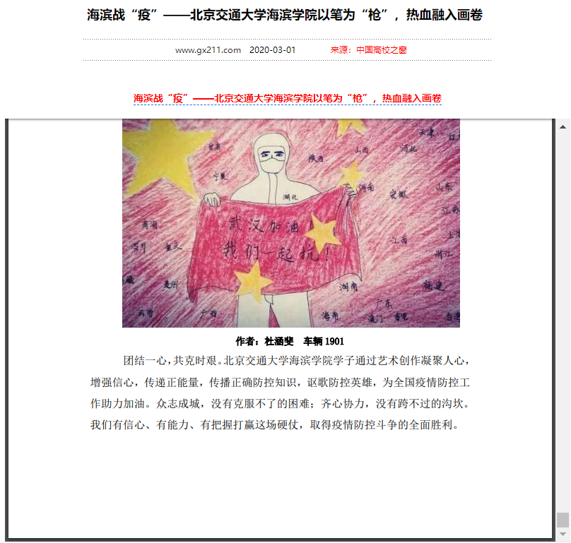 【中国高校之窗】海滨战“疫”——北京交通大学海滨学院以笔为“枪”,热血融入画卷