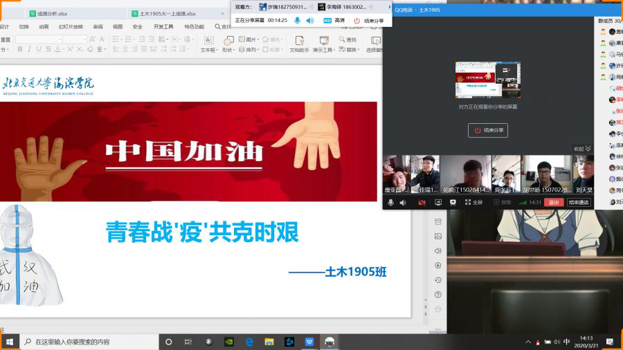 为加强学生对新型冠状病毒自我保护措施的认知,增强同学间的交流与合作,增强集体责任感与使命感,我校土木建筑工程学院决定开展“青春战‘疫’,共克时艰”网络主题班会活动,各班班长积极组织全班同学开展云视频会议,带领同学们大声宣读抗“疫”承诺,宣传疫情防控知识,坚定同学们的抗“疫”决心。