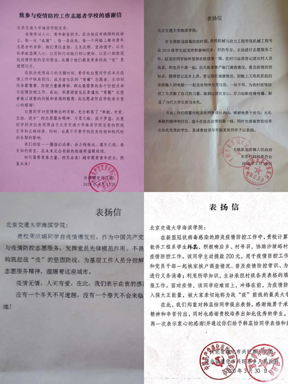 近日,我校收到了很多来自全国各地方政府的感谢信,中对参加疫情防控工作的我校师生提出表扬,表扬他们在新冠肺炎疫情防控的特殊时期以志愿者身份为家乡抗疫工作所做的贡献,对我校学子良好的素质教育与优良校风校训提出肯定,向我校表示由衷地感谢与诚挚的问候。