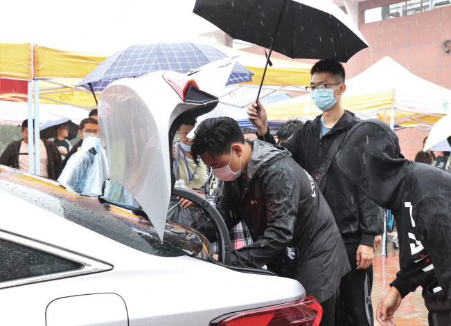 受疫情影响,家长不能陪同进校,为保证新生健康顺利报到,我校教职工自愿结成“海滨教职工爱心车队”帮助学生运送行李,海滨食堂也无偿为我校学生准备姜汤驱寒。迎新志愿者们在校门口陈列排排帐篷,为新生搭建起校园咨询处和行李寄存处他们组织学生间隔排队,依次进行手物消毒、身份及健康绿码核验、体温检测等检查流程。忙碌的学生志愿者用最关切的问候、最贴心的服务、最灿烂的微笑为每一位到来的新生传递暖心关怀,让新生体会到家的温暖。