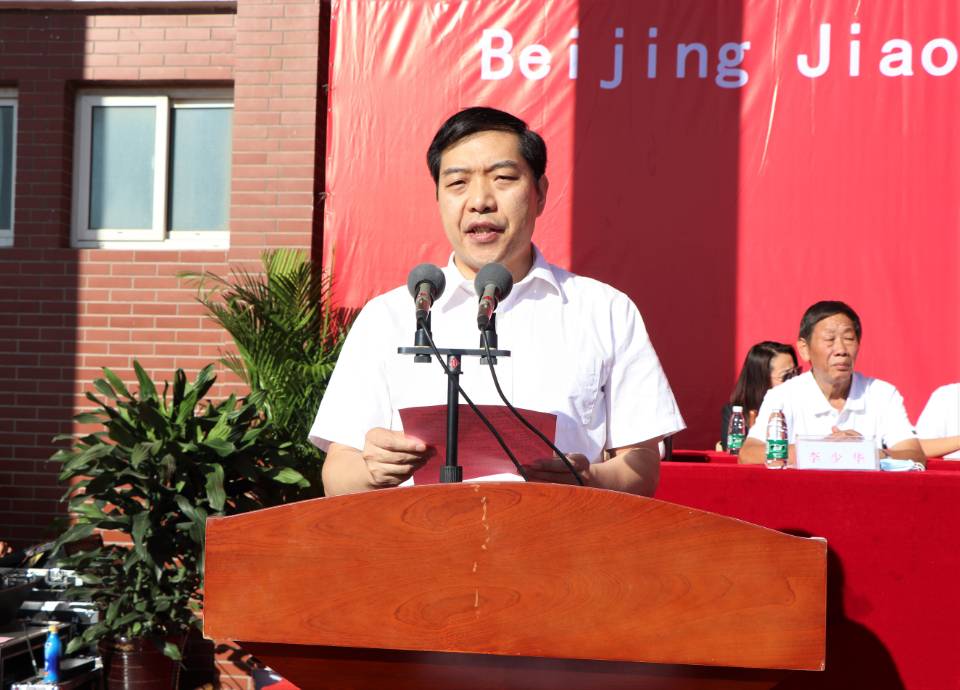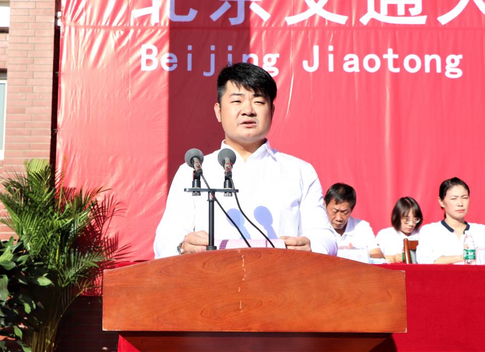 北京交通大学副校长赵鹏向全体新同学表示热烈的祝贺并向家长致以崇高的敬意。赵校长表示北京交通大学将继续支持海滨的发展,并时刻关注、全力呵护每一位海滨学子的成长。他希望同学们树立远大理想,将个人的前途命运与国家的梦想同频共振,与民族的荣辱休戚与共;在理想的指引下,勤学善思、奋勇向前,让青春在奋斗中闪光;在行动的道路上不畏险滩、不惧风雨,展现出迎难而上、从容不迫的韧劲和勇气。