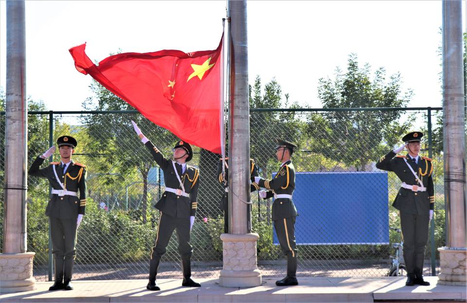 伴随着雄壮的国歌,全体师生肃立,五星红旗与我校校旗一同在全校师生的注目下冉冉升起,开学典礼拉开帷幕。
