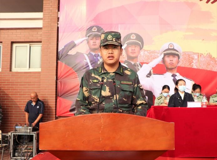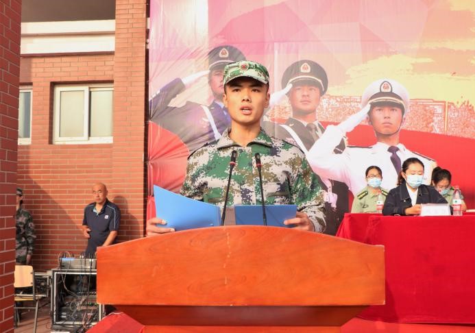 学员代表军训团五营电气工程及其自动化专业1907班王梦岐发言。