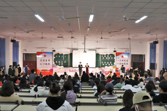 为弘扬爱国精神,传递道德温度,培养学生创新思维,营造和谐欢乐的校园氛围,我校于11月4日晚7时在知行a301举办“以德立身厚德载物,百年建党初心弥坚”道德小品大赛。我校校长助理吴立军,宣传统战部部长杨婷婷,学生处处长王庆松,党群工作部副部长彭一腾,校团委书记曹蒙春,电子与电气工程学院团委书记李艳梅,化学与制药工程学院团委书记张忠铭,计算机与信息技术学院团委书记张晗,学生处和各院辅导员老师出席本次活动。
