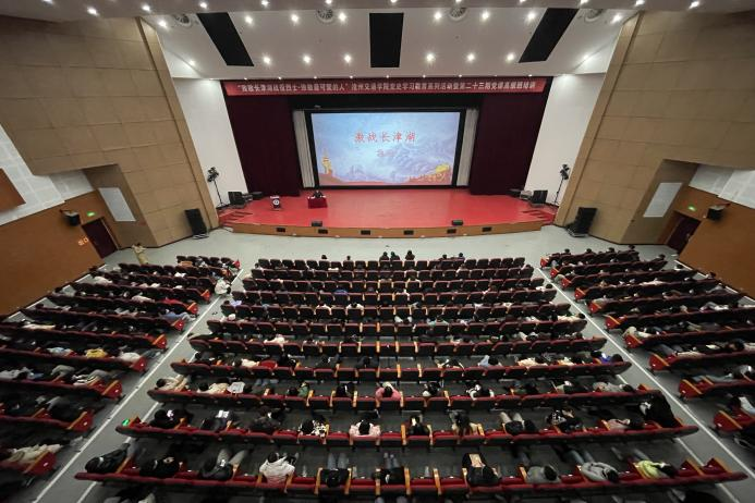 为深入贯彻党的十九届六中全会精神,推动党史学习教育,做好师生党员教育工作,我校于12月4日9:30在天佑会堂开展“致敬长津湖战役烈士·致敬最可爱的人”党史学习。长津湖战役志愿军指挥官宋时轮将军女儿宋百一担任主讲人,沧州市教育局团工委书记董金花、我校党委副书记吴立军、党群工作部副部长彭一腾出席讲座,各学院团委书记、辅导员以及发展对象、入党积极分子参会,此次讲座由学生处处长王庆松主持。