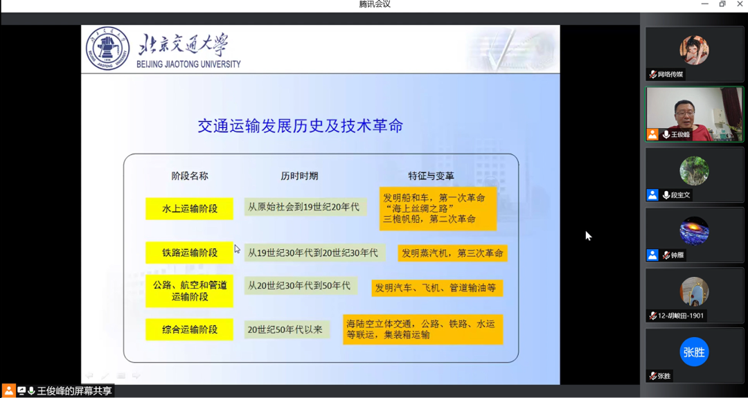 讲座开始,王俊峰教授通过个人工作经历带入主题,对交通运输的概念和目前的交通现状进行了全面介绍,帮助同学们对整个轨道信号与控制有了更深刻的认识与了解。