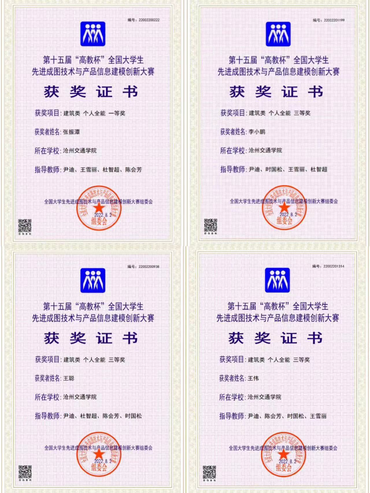 学校领导高度重视本次比赛,大力支持学院开展各项竞赛工作。我校土木建筑工程学院师生克服困难,积极参赛。最终在尹迪老师、时国松老师、王雪丽老师的指导下,学院代表队不畏强手,稳定发挥,脱颖而出取得了斐然的成绩,在全省高校制图与构型领域充分展示了沧州交通学院教师精湛的教学水平、学生扎实的专业技能和良好的综合素养。