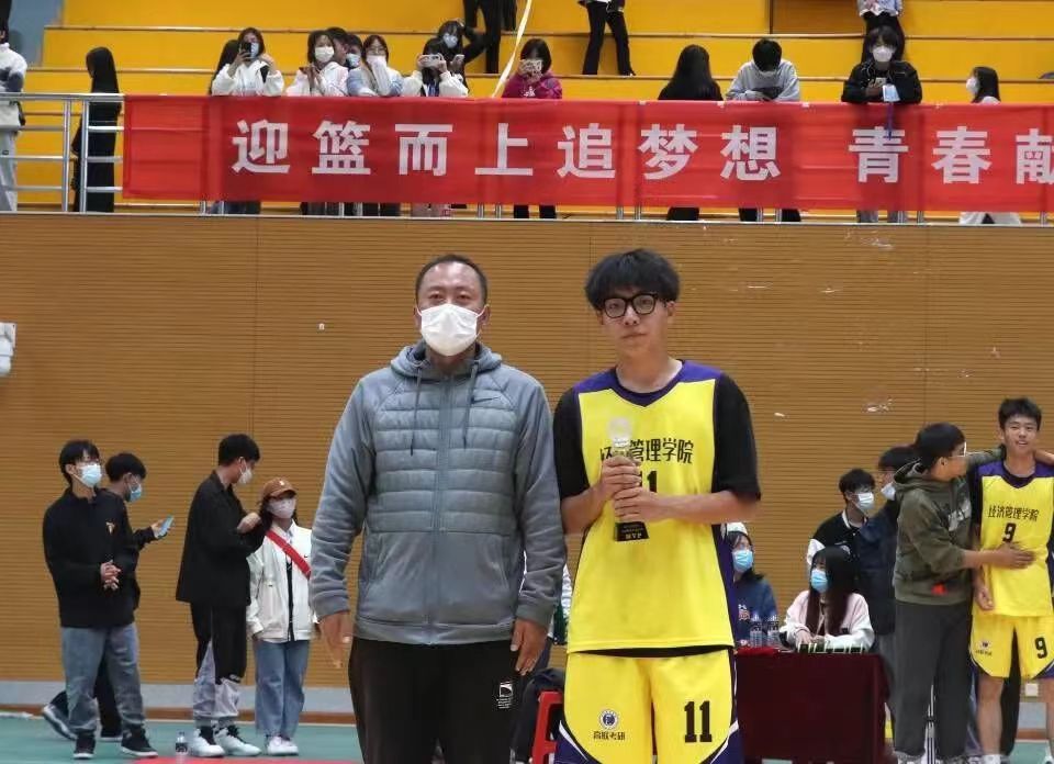10月27日中午,我校在体育馆成功举办“迎‘篮’而上追梦想,青春献礼二十大”主题新生杯篮球赛决赛。学生处处长王庆松,校团委书记、学生处副处长曹蒙春,经济管理学院团委书记孙经纬,计算机与信息技术学院团委书记张晗,外国语学院团委书记周志慧以及各学院辅导员老师出席本次活动。