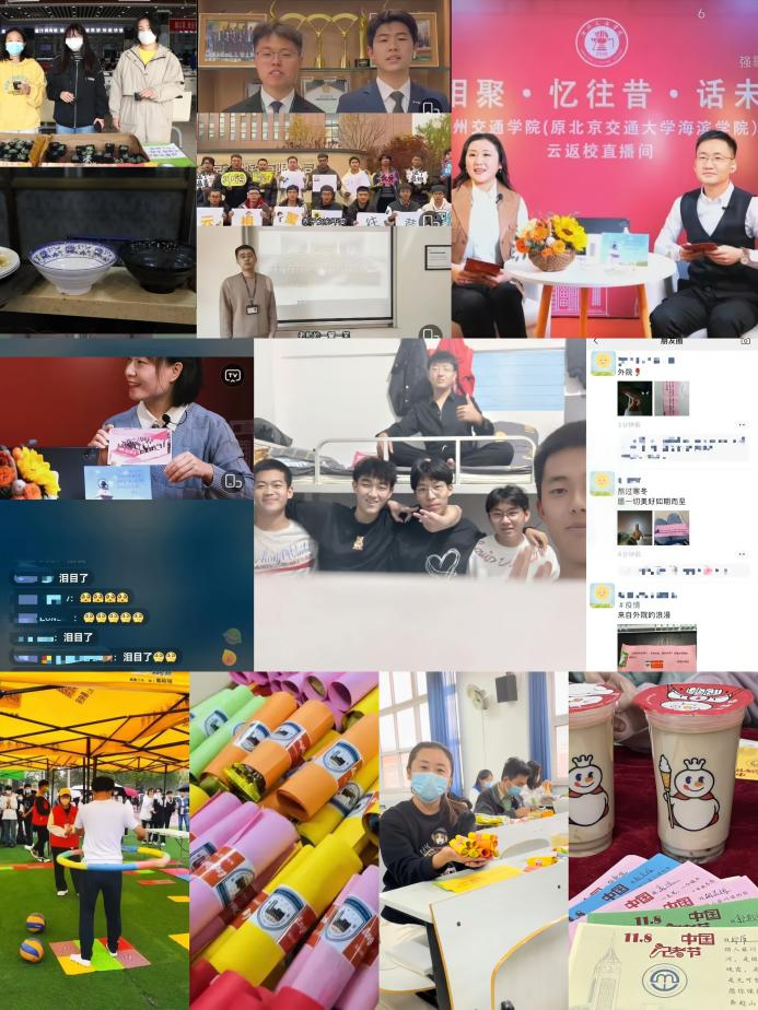 群力划船船越快,众星拱月月更明。沧交人深深明白,同困难作斗争,是物质的角力,更是精神的对垒,团结与共、用爱克服疫情万难。家国撞个满怀,师生共度国庆,沧交国庆游园会顺利进行,为封校大环境下的师生增添生活乐趣,在浪漫的中国红中告白祖国;一封封家书在公众号展出,是新生对父母无限思念的温柔答复,“爸爸妈妈,我在沧交挺好的!”响彻在校园的处处,父母叮咛填满聊天记录;当核酸检测成为临时管控师生的日常,总有人会让你“破防”,外国语学院的大家长们在核酸检测现场为同学们送上零食与“秋日限定小盲卷”,温暖的话语印在五颜六色的小盲卷上,多了一重战胜疫情的坚定;珍惜粮食,落实光盘,心有使命,不负三餐,靠“吃”得来的多肉更能让我们牢记勤俭节约的传统美德;冬天的第一杯奶茶,送给大学生校园媒体工作者,他们用情怀与态度记录沧交美好,春夏秋冬,皆是温暖;云相聚、忆往昔、话未来,校友会举办的云返校活动让沧交直播间人气爆满,校友们与在校生云见面,穿越十年回看沧交发展,恩师现身,共叙沧交事,校友云集,再忆同窗情……人生总要有不期而遇的温暖和生生不息的希望,疫情限制了我们的行动,却拉近了我们的距离,余味苦涩,终有回甘,沧交学子定在爱与温暖中顺利渡过难关!