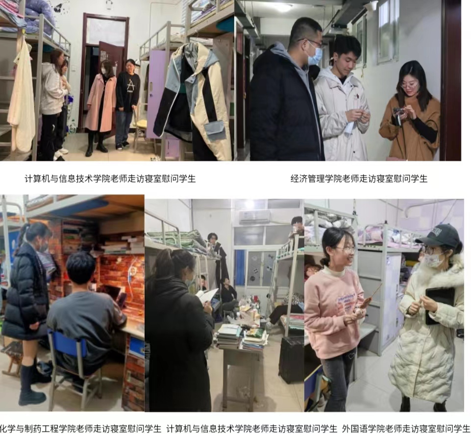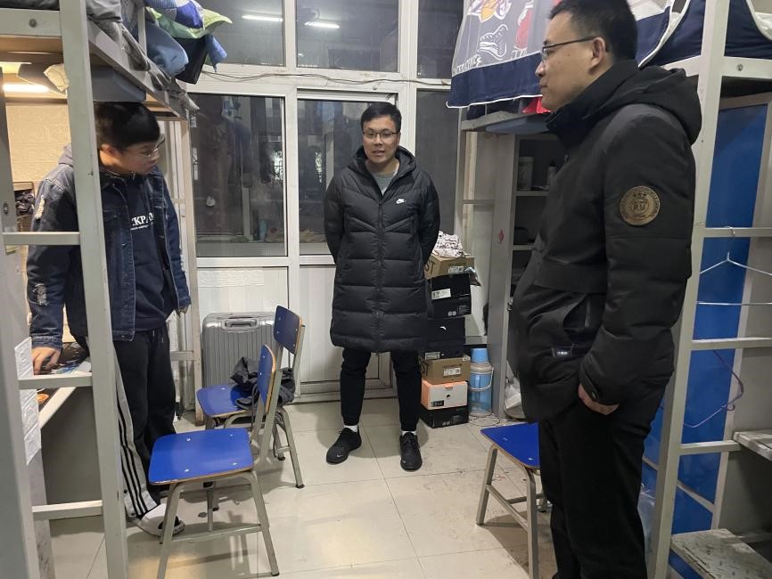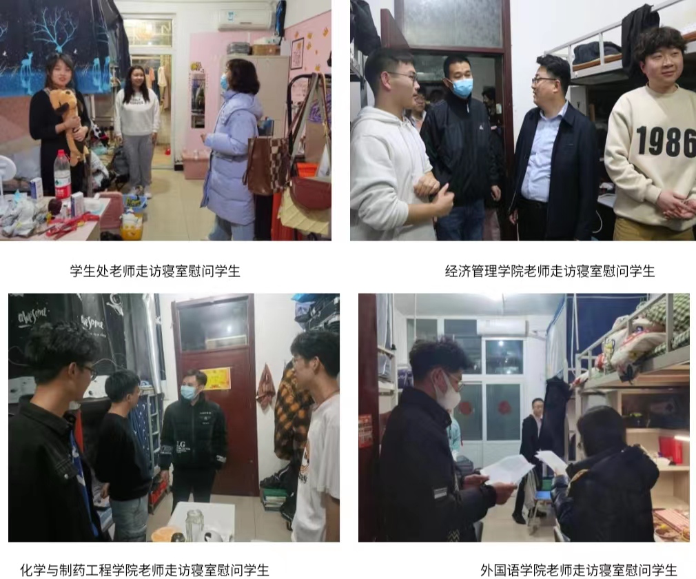 新学期伊始,2月26日18:00,我校校领导党委副书记吴立军,学生处处长王庆松,校团委书记学生处副处长曹蒙春,学生处副处长翟砚辉及学生处老师进行了寝室走访工作,同时各学院团委书记、全体辅导员自行组织开展了寝室走访工作,在第一时间了解学生的返校情况、思想动态、生活状况、学业问题。