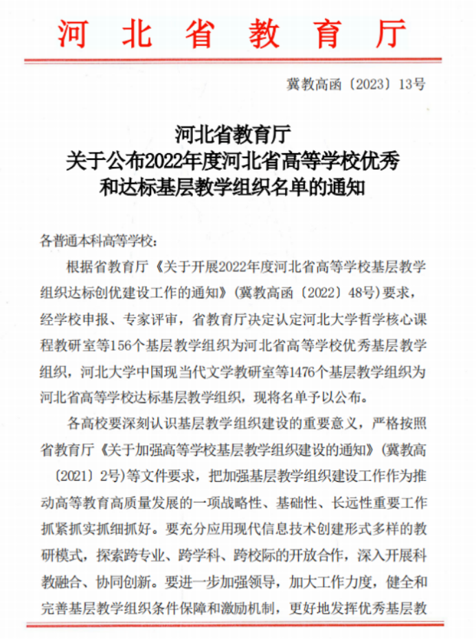 喜报!我校成功获批1个河北省高等学校优秀教学组织 和17个达标基层教学组织