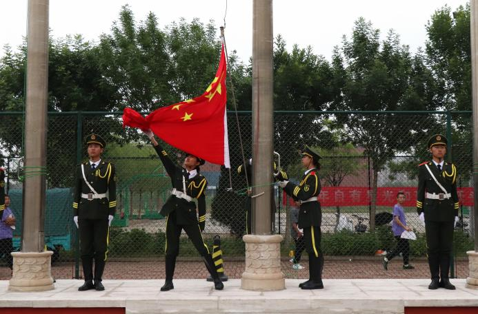 伴随着庄严的国歌声,鲜艳的五星红旗冉冉升起,全体师生起立,面向国旗行注目礼。带着期待,伴着满满的祝福,我校第十二届田径运动会顺利开幕。