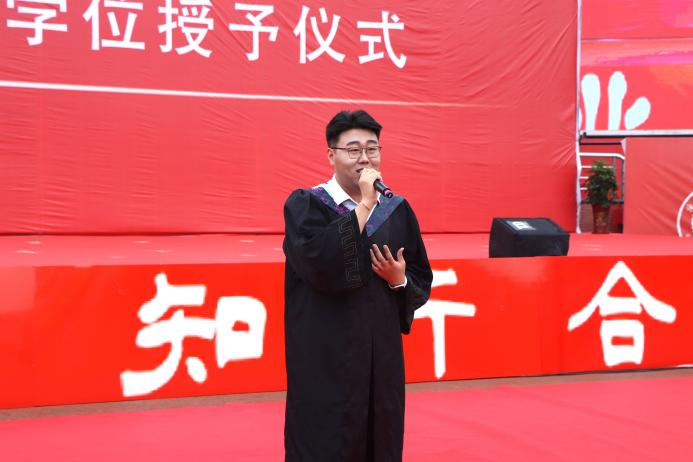 土木建筑工程学院王子欣苒同学代表全体毕业生在发言中深切感怀了四年来与母校走过的点滴,细数在校期间收获的经验和累累硕果,表达亲身见证学校不断发展的自豪之情。她代表毕业生向大学时期所有关心、帮助和包容过大家的老师们道一声感谢,虽有万千不舍,但未来仍会怀揣着在母校的所学所获继续勇往直前,最后她祝愿每一位毕业生都能前程似锦、未来可期。