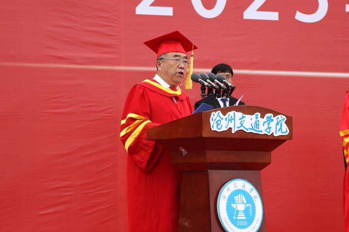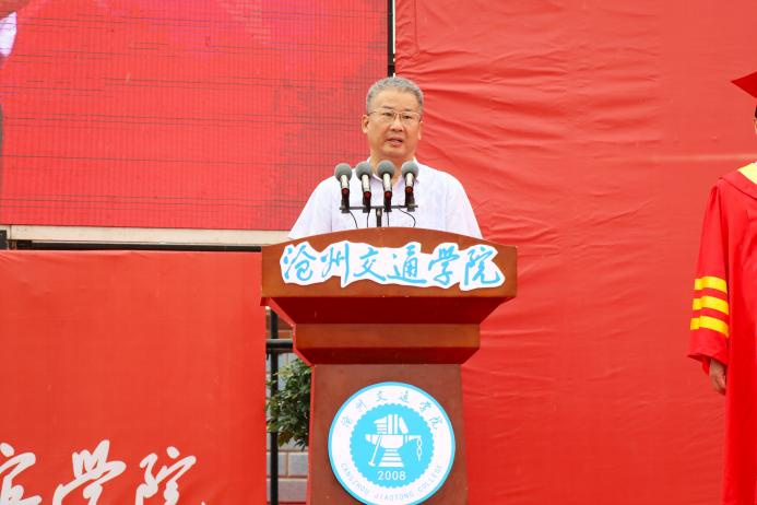 北京交通大学党委常委、副校长高亮致辞。他指出,面对人生的新征程,面对纷繁复杂的社会和充满未知的挑战,希望大家怀抱青春梦想,扛起时代担当,弘扬北京交通大学与沧州交通学院自强不息、艰苦奋斗的优良传统,展现青年人勇当开路先锋、争当事业闯将的优秀品质,在与新时代同向同行的新征程上,勇挑重担、无私奉献。