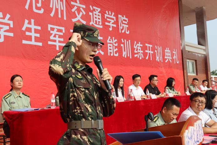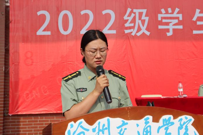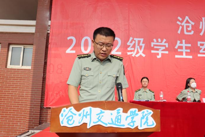 学生处处长王庆松宣读“沧州交通学院2022级学生军训团”组成名单。