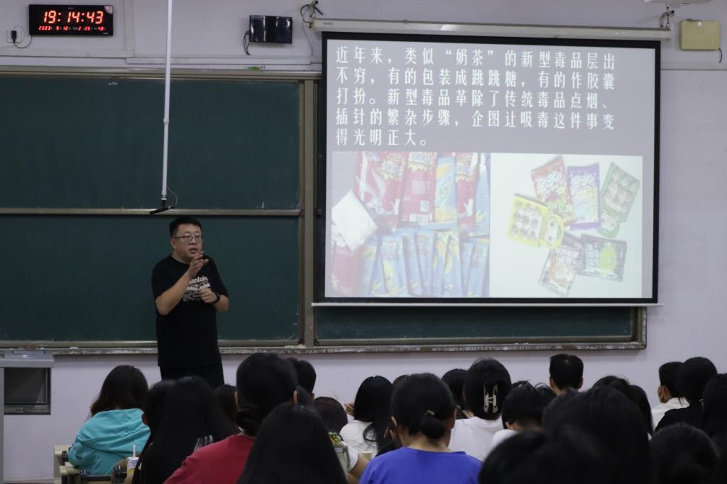 禁毒教育关乎大学生身体健康、心理健康和人格健康,意义和责任重大。高校作为传播正能量、弘扬主旋律的主力军,要在禁毒、防毒、抵制毒品等方面,利用好专业特色,打造健康知识理念,扩大禁毒影响,真正打造“无毒校园”。为深入贯彻落实习近平总书记关于“大思政课”的重要指示批示精神,聚焦立德树人,推动铸魂育人,我校聘请禁毒民警开设《毒品的认知与预防》公选课,助力大学生安全教育管理。
