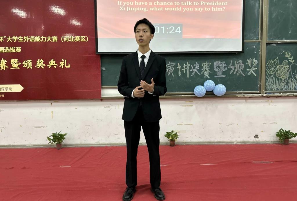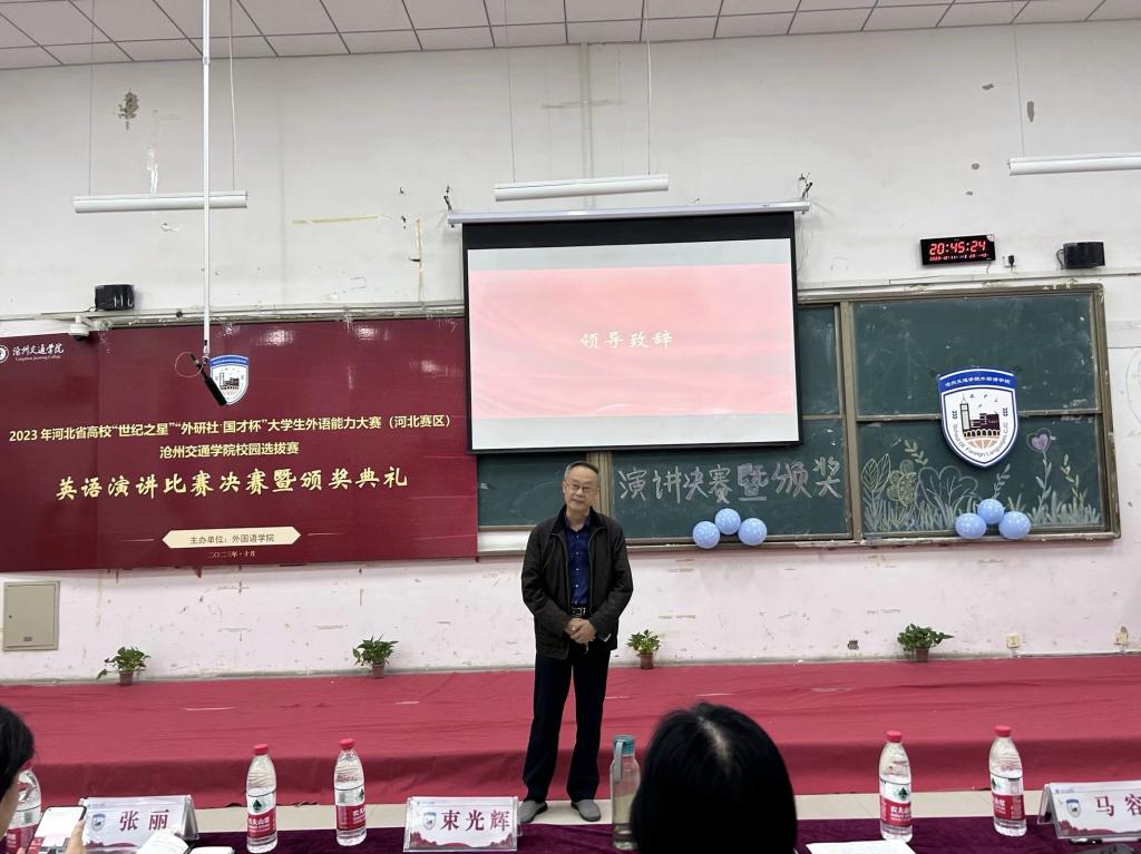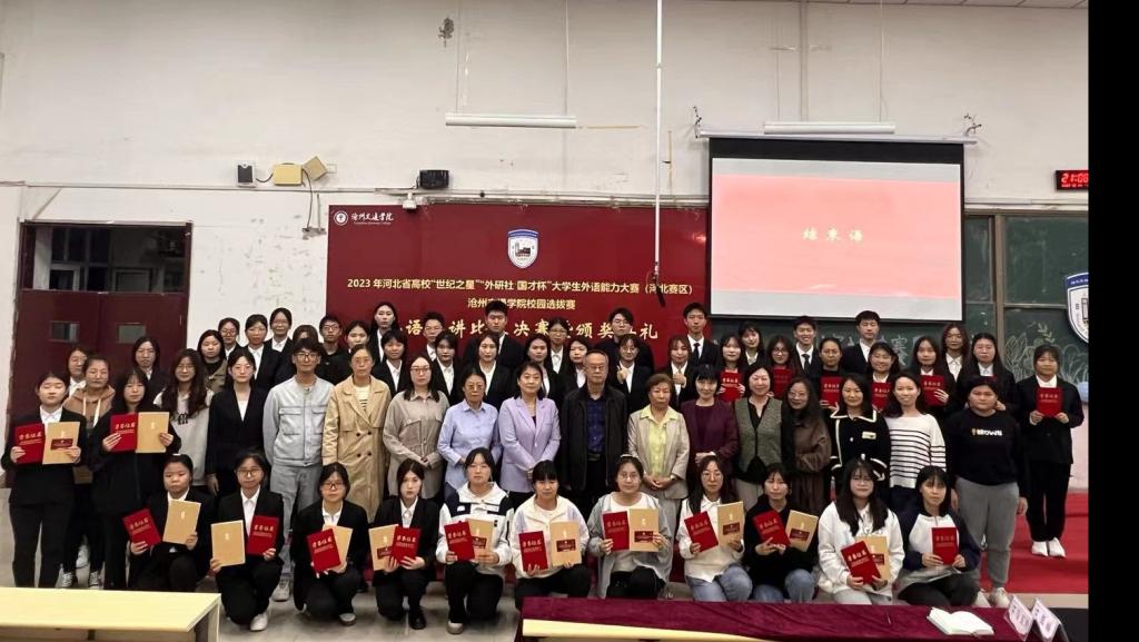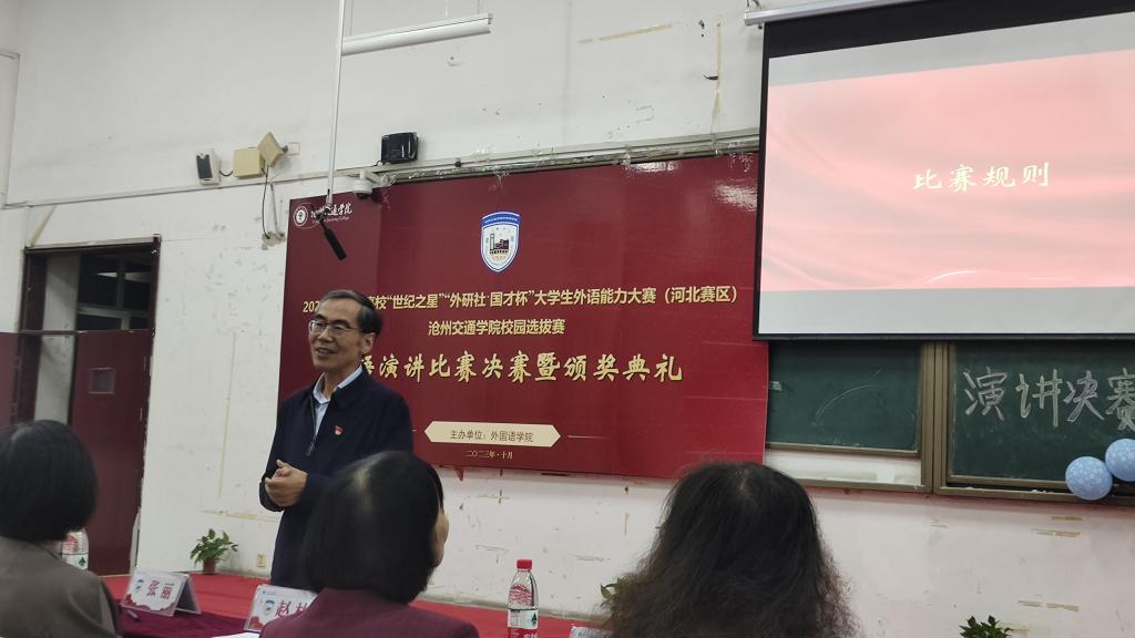 10月11日晚七点,我校2023河北省高等学校“世纪之星”“外研社·国才杯”大学生外语能力大赛(河北赛区)校园选拔赛英语演讲比赛决赛暨颁奖典礼在思源楼325教室成功举办。