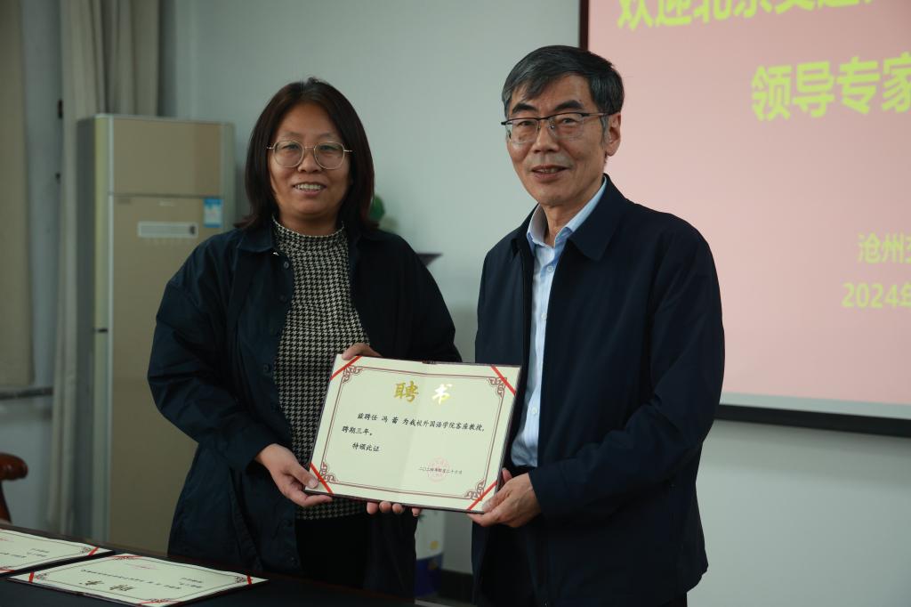 章梓茂校长为此次来访的三位专家举行了聘任仪式,聘任三位专家为我校外国语学院客座教授,并为其颁发聘书,以助力外语学科建设。会后,在外国语学院领导的陪同下,戴江雯主任一行参观了我校校史馆及校园环境。
