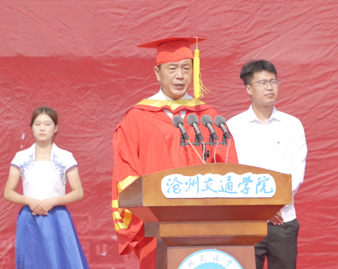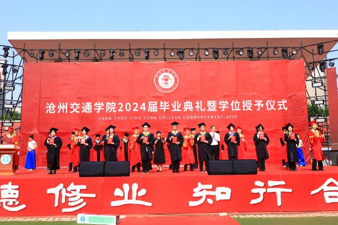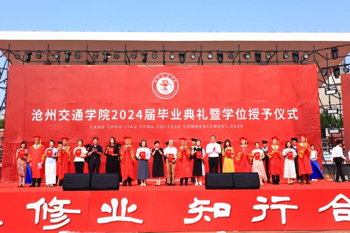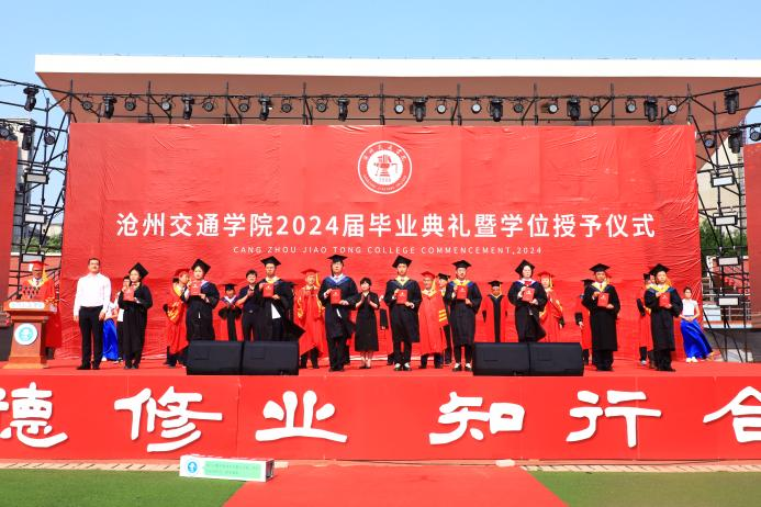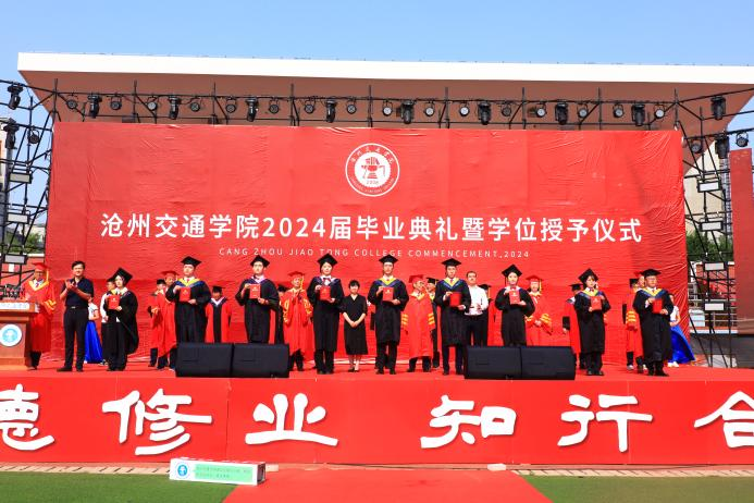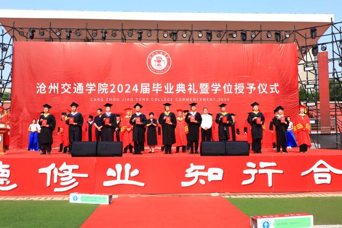 回顾四载春华秋实,喝彩盛夏硕果累累。6月13日上午8时我校2024届毕业典礼暨学位授予仪式于体育场隆重举行。渤海新区黄骅市人民政府副市长张桂云,北京交通大学驻校办学督察任虹宇,渤海新区黄骅市教育局局长何寿彪,我校校长章梓茂,党委书记庞更新,副校长、财务总监余裕玲,副校长赵金楼,副校长王忆宁,党委副书记、副校长邵晓康出席本次典礼。党委副书记吴立军主持典礼。