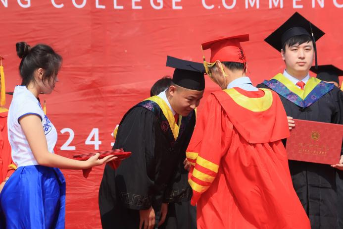 副校长赵金楼宣读2024届全日制本科毕业生学士学位授予决定。根据国家教育部和河北省教育厅相关规定,经审核,我校2024届共有4915名同学获得毕业资格,准予毕业;共有4913名同学符合学士学位授予条件,授予学士学位。