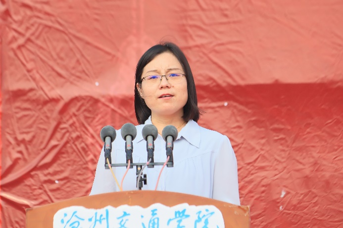轨道交通学院聂正英老师代表全体教师向毕业生们表示祝贺。她希望毕业生们能保持终身学习的热情,勇做走在时代前列的奋进者、开拓者和奉献者,书写精彩人生;常怀感恩,将校训铭记于心,肩负起时代赋予的责任和使命;不忘师恩,常回母校看看。
