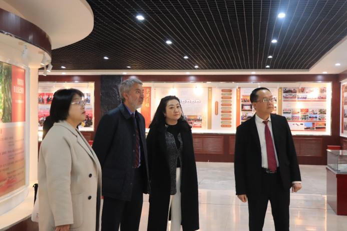 下午4点,嘉宾一行参观了校史馆,了解了学校的办学历史与成就,并对我校在国际化教育领域未来的发展表示高度赞赏。