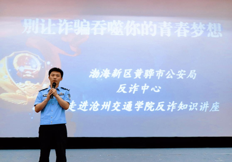 为强化2025级新生安全防范意识,筑牢校园安全防线,915日,我校联合渤海新区黄骅市公安局反诈中心、骅西派出所,在天佑会堂举办新生反诈知识讲座。活动聚焦大学生群体高发的电信网络诈骗问题,通过专业宣讲与互动问答相结合的形式,为新生上好法治开学第一课
