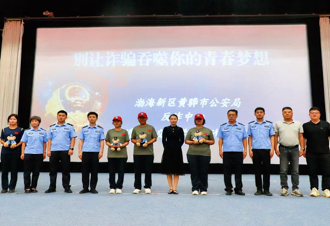 渤海新区黄骅市公安局反诈中心主任孙涛、骅西派出所所长提伟,我校副校长王忆宁、安全保卫处处长周鹏、学生处副处长孙经纬及反诈中心、社区民警代表出席活动,2025级新生代表参与学习。