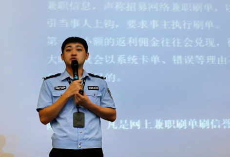 市公安局反诈中心民警胡博程以别让诈骗吞噬你的青春梦想为主题展开宣讲。他重点解析了大学生易遭遇的五类典型诈骗手段:兼职刷单、虚假投资理财、网络贷款、冒充客服退款诈骗及冒充公检法诈骗。胡警官通过还原真实案例,生动拆解了诈骗分子的作案手法,帮助学生直观地认识诈骗行为的特征。针对防范要点,他提出三项实用建议:一是摒弃贪利思想,杜绝侥幸心理;二是强化个人信息保护,严防敏感信息泄露;三是遇事保持冷静,通过多种渠道核实信息。现场还分享了易记易懂的防诈口诀,助力学生掌握关键防范要点。